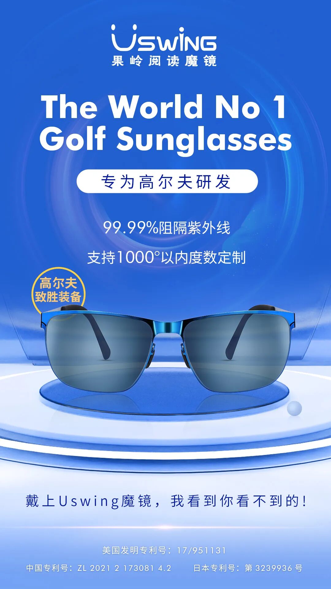 Uswing魔镜是世界首创高尔夫专用太阳眼镜,由中国创新科技公司——高宝永盛科技(珠海)有限公司历时多年研发设计,于2020年正式面市。