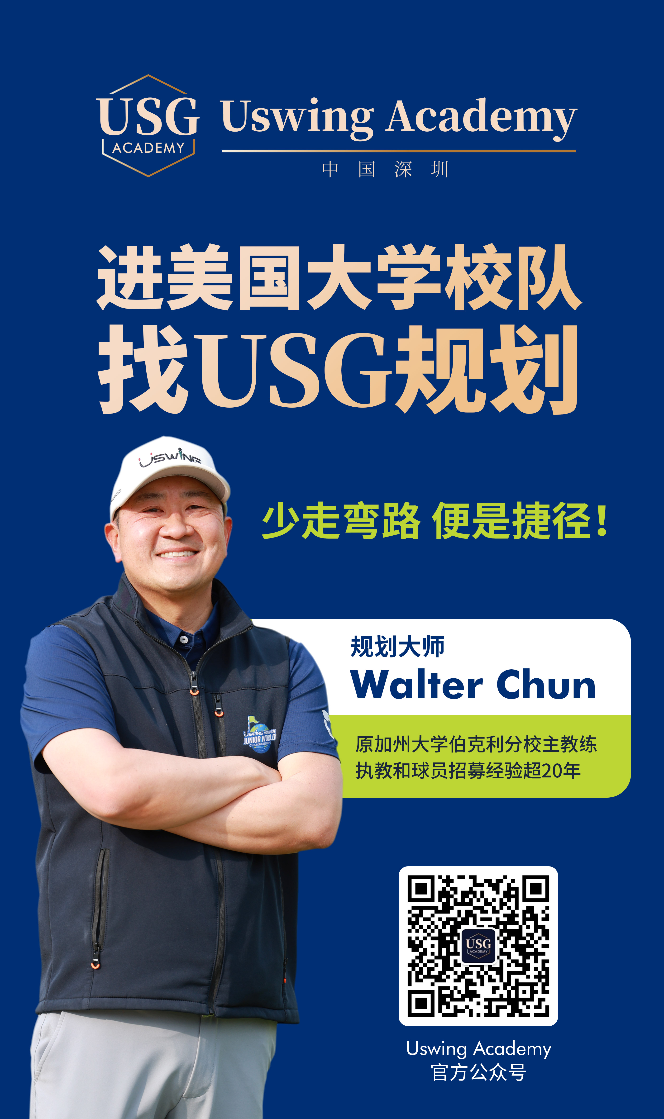 高尔夫运动心理学博士Walter Chun是NCAA升学的行家里手,他原为加州大学伯克利分校主教练,执教和球员招募经验超20年。