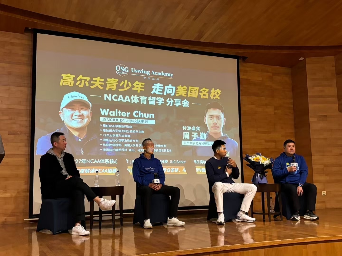广东站赛事也是如此。1月10日,NCAA升学规划分享会在赛事现场同期举行,Uswing魔镜及USG学院创始人方诚毅、USG学院执行院长Walter Chun、加州大学伯克利校队主力周子勤和爱文国际学校学生成长与发展总监韩冰等嘉宾共同出席。