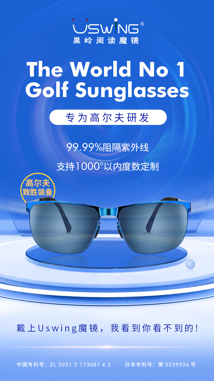 佩戴Uswing魔镜,不仅保护了球员的眼睛不受烈日的伤害,还能帮助球员看清果岭上的一切信息,更加准确地判读线路,大大提升击球进洞率,降低杆数。